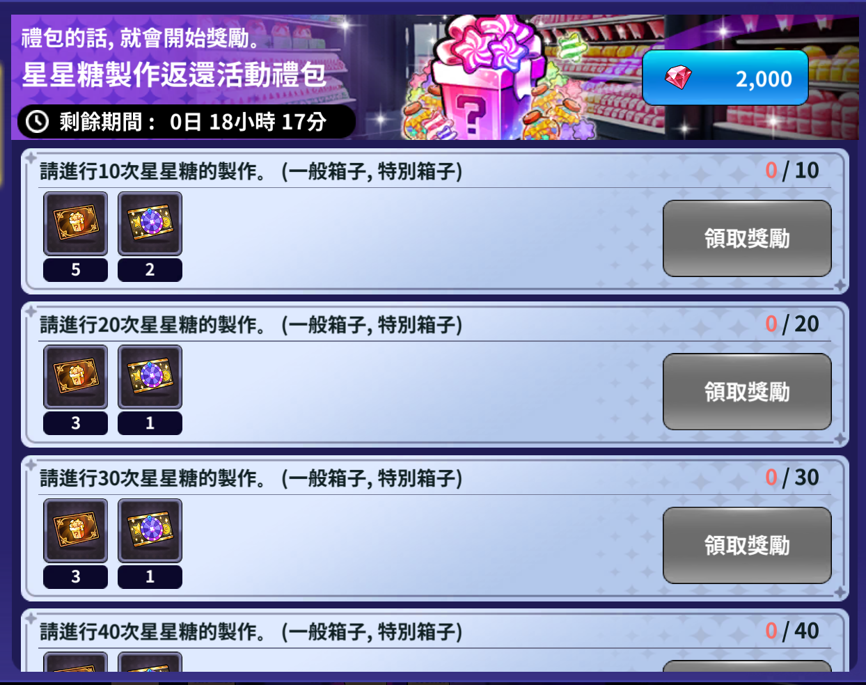 | 星星糖強化返還活動禮包 | 愛之流星召喚返還活動禮包 | ||