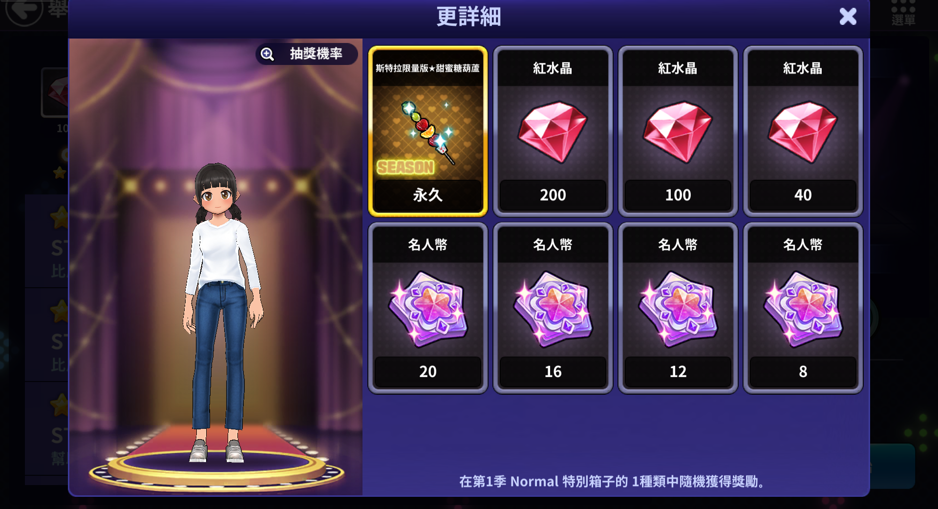- 明日之星通關獎勵中,如果獲得以下箱子,將由原來的1個增加到2個。