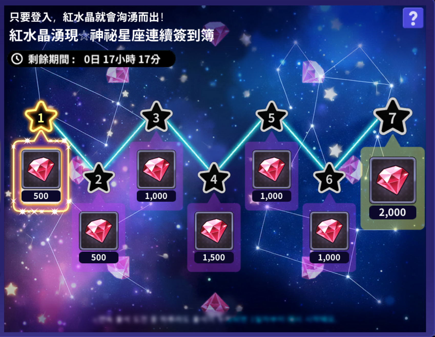 | 第7天 | 2,000 紅水晶 |