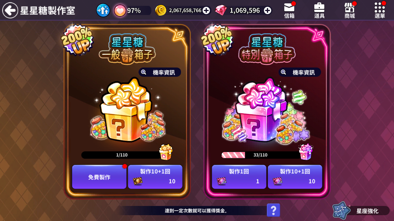 - 星星糖製作室進行抽卡時,星星糖的獲取量將增加到200%。