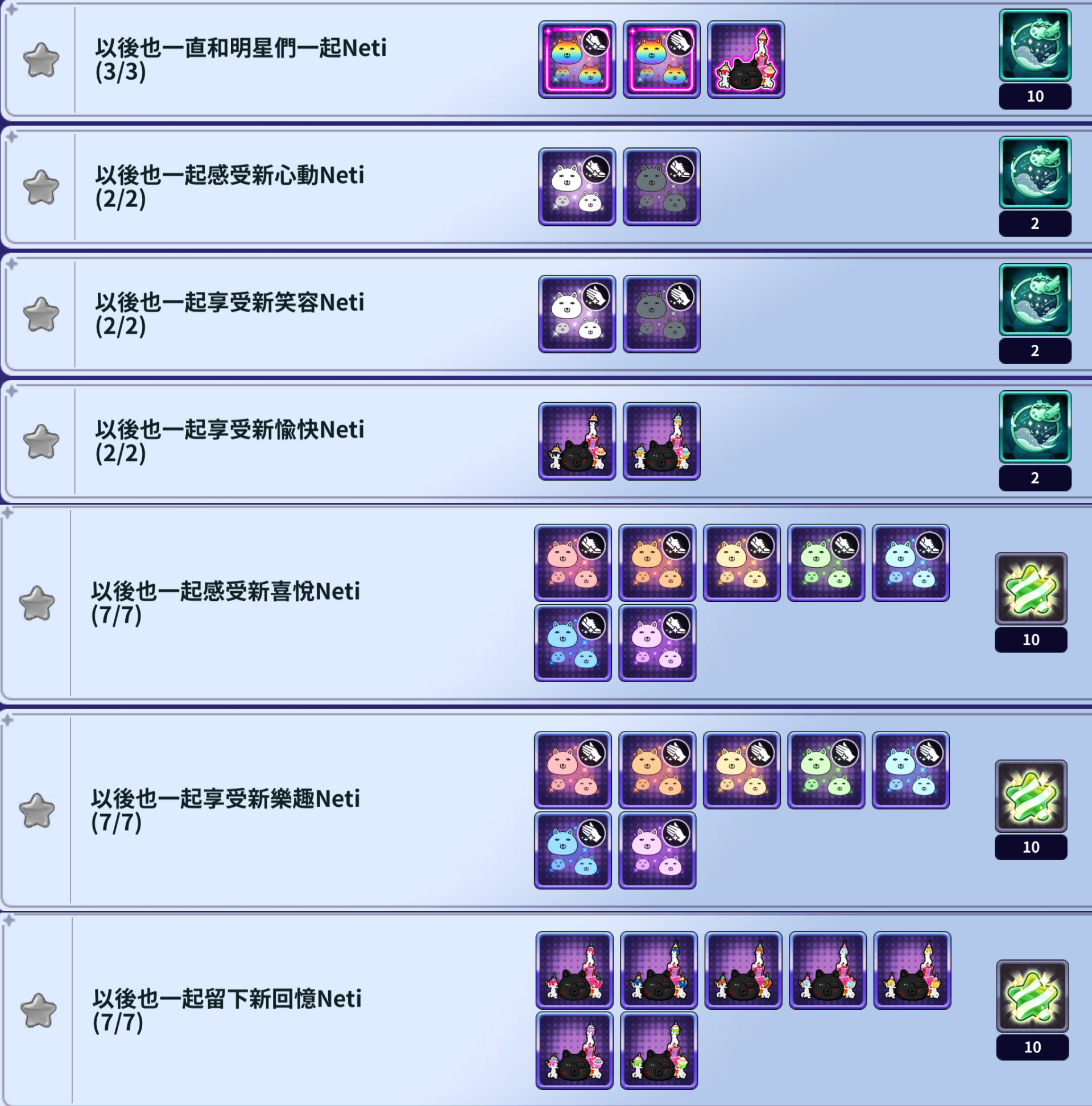 - 期限結束時不能獲得收集獎勵,請務必在期限內獲得。