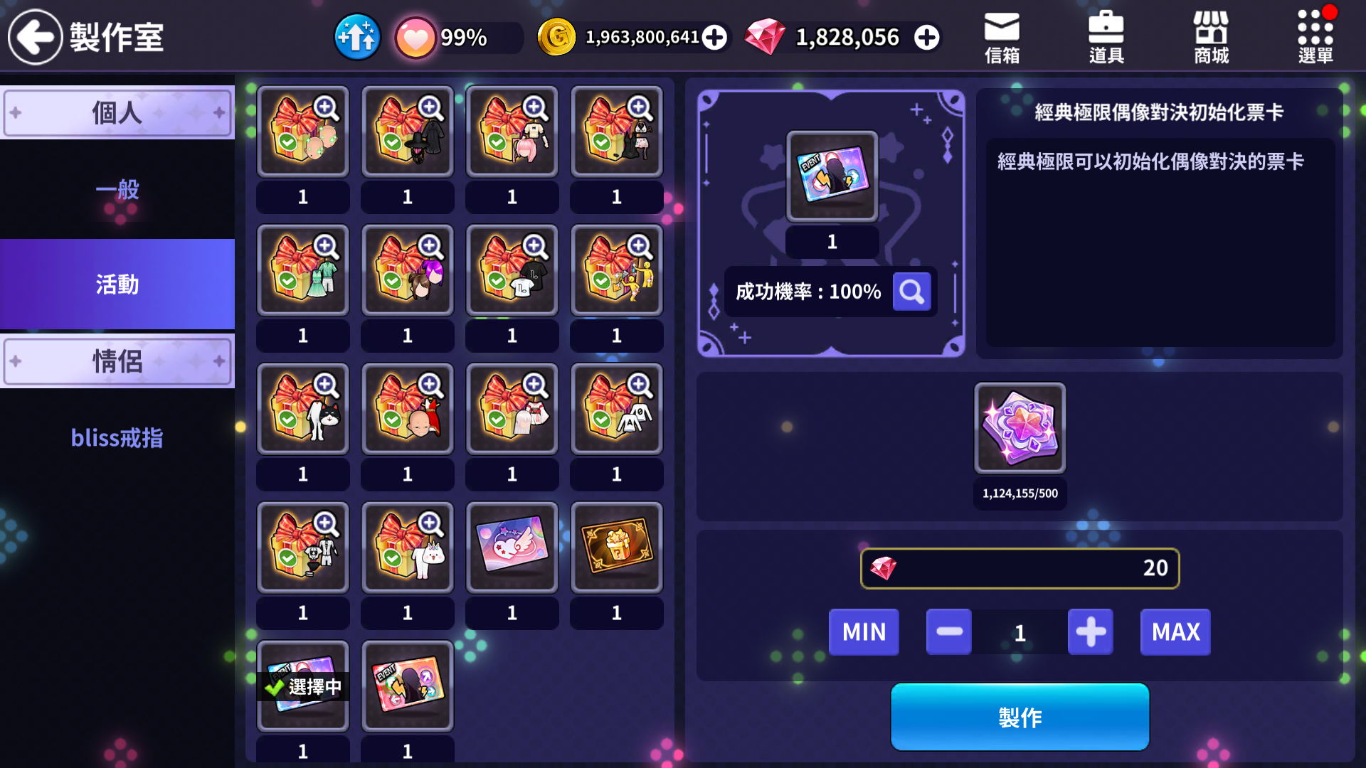 另外新增[極限偶像對決初始化票卡]製作項目!