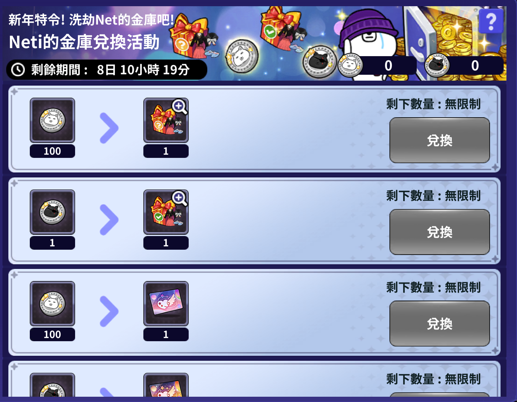 - 큐티 캣 및 레인보우 유니콘 수집 : 12月31日(三)定期維護後~ 02月25日(三) 08:59 AM