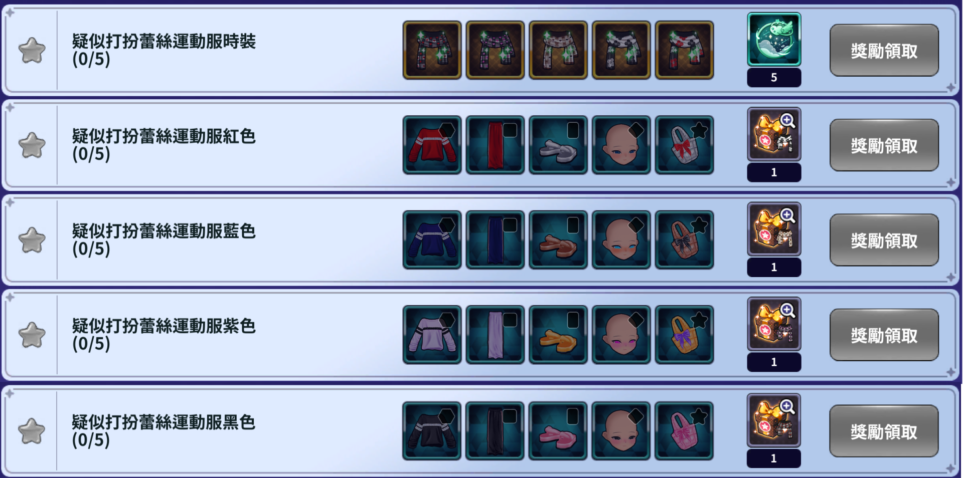 - 獲得符合每個收集獎勵的時裝,當符合條件時,就可以獲得收集獎勵。