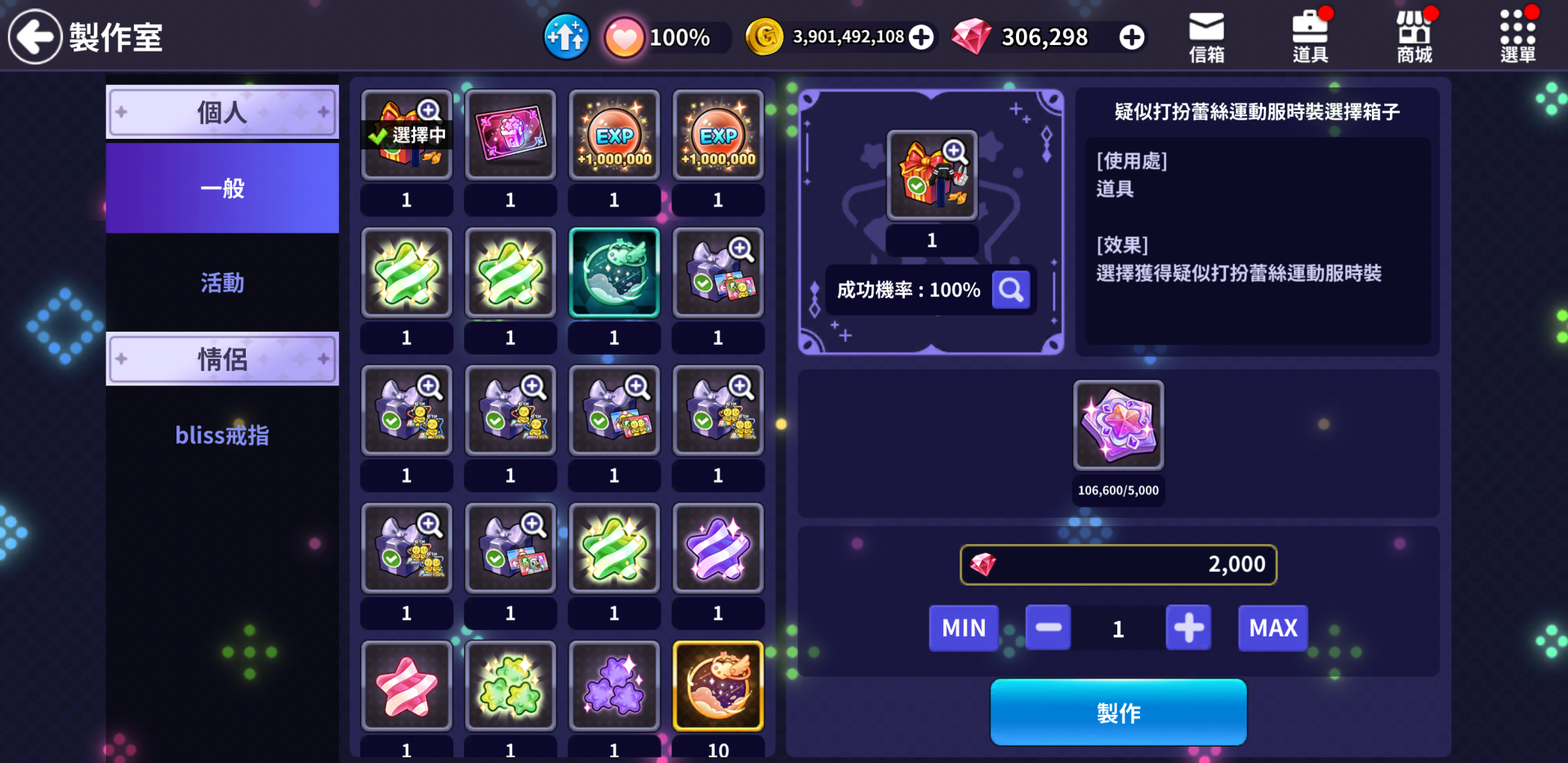- 將可以獲得的名人幣製作成想要的箱子或是道具等。