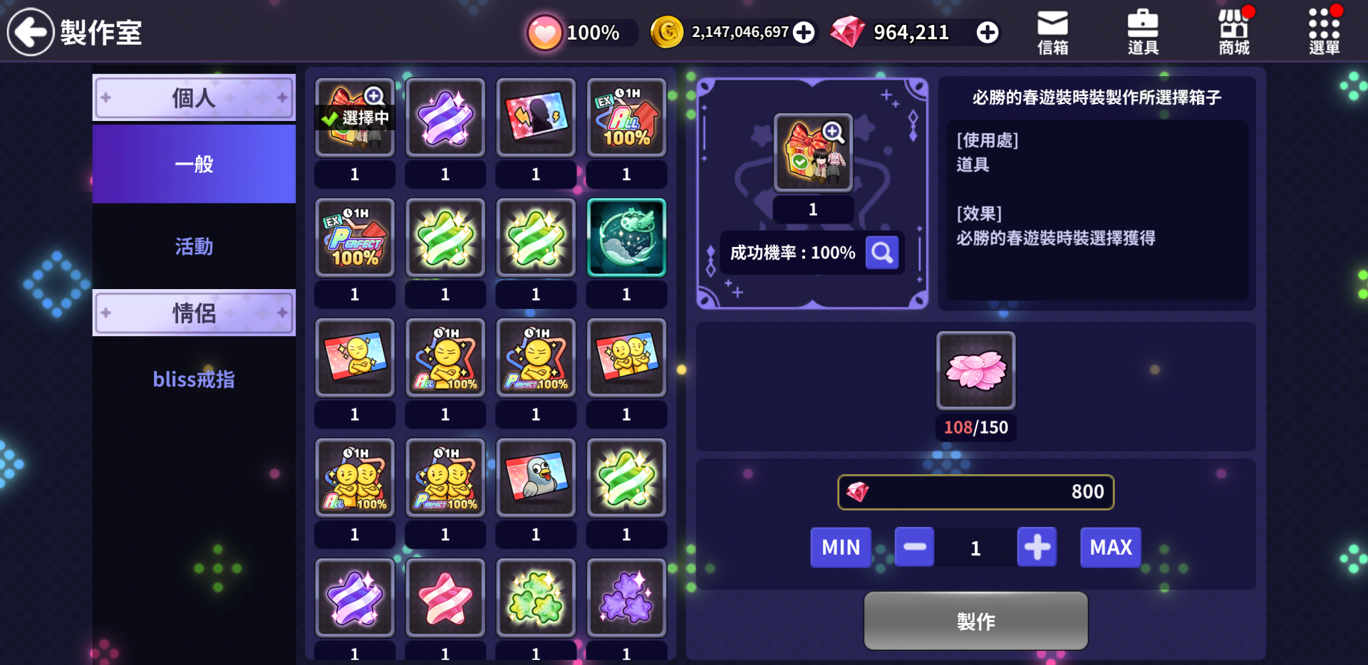 - 將可以獲得的道具製作成想要的箱子或是道具等。