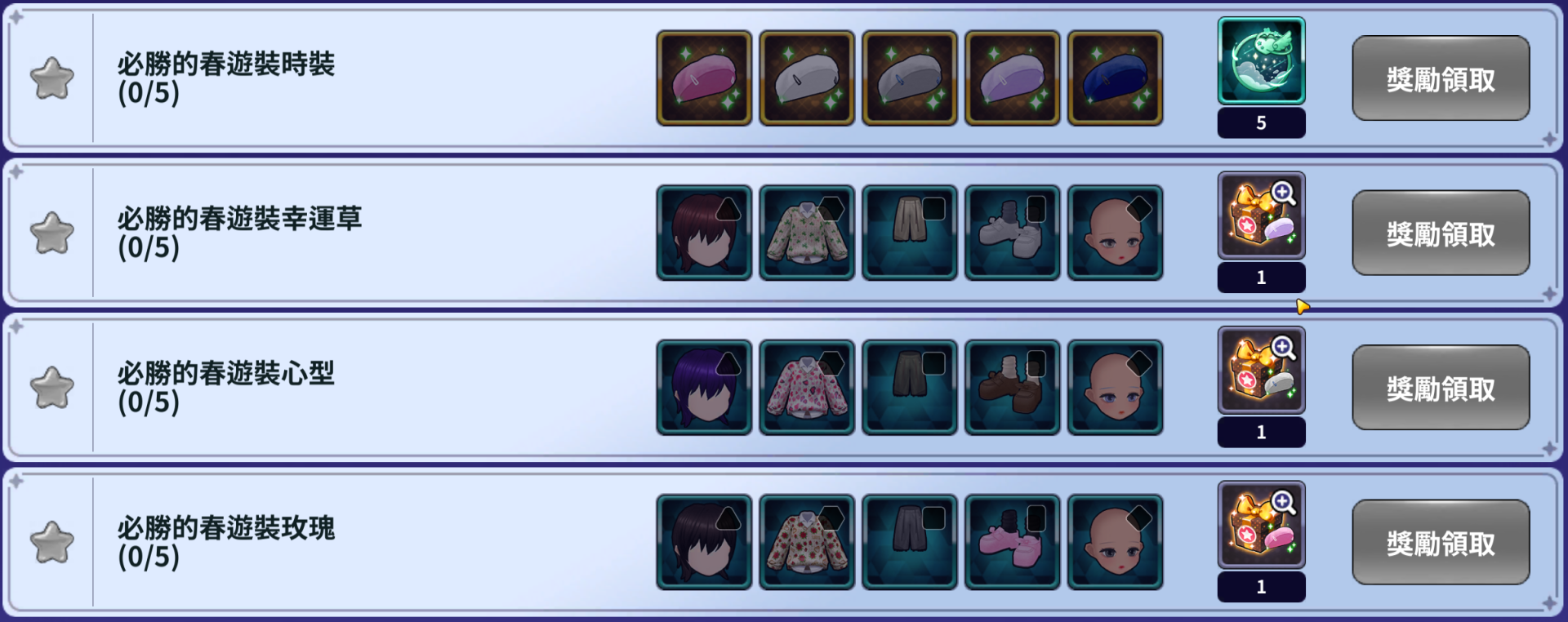 - 獲得符合每個收集獎勵的時裝,當符合條件時,就可以獲得收集獎勵。