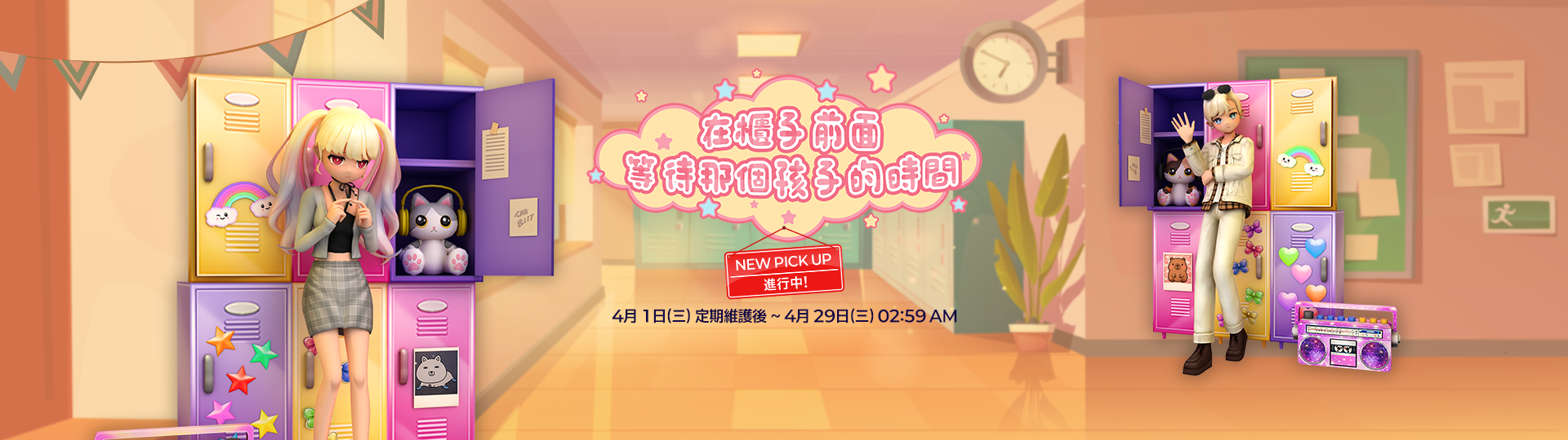 - [主畫面] - [愛之流星] - [愛之流星召喚] - 點擊[🗄️在櫃子前面等待那個孩子的時間🗄️]後進行召喚。