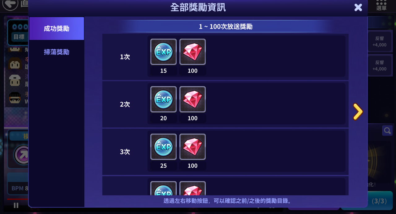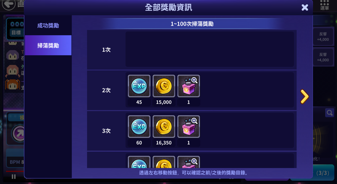 | 成功獎勵 | 掃蕩獎勵 |