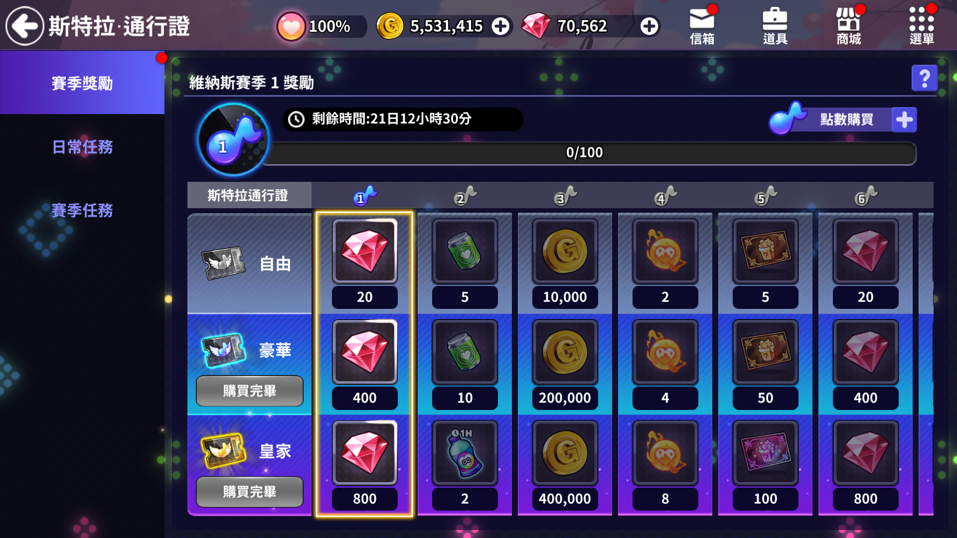 📌斯特拉通行證 [豪華通行證]及[皇家通行證]的內容物中,部分獎勵作上調。