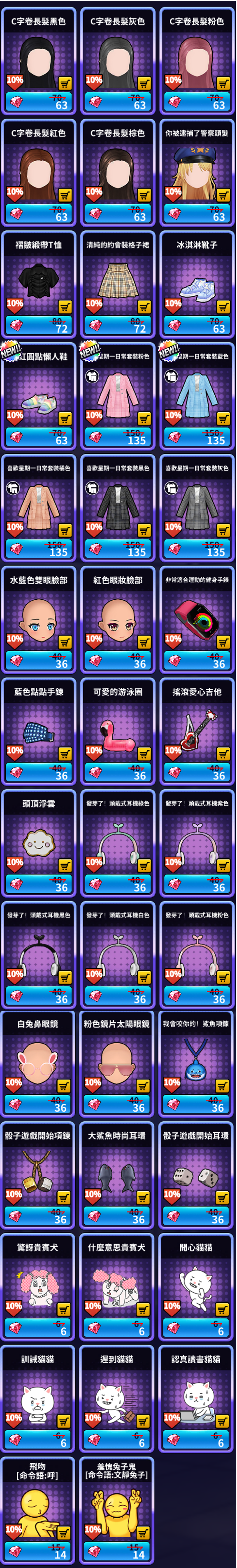 [루비 샵] 추가 상품 (여성)