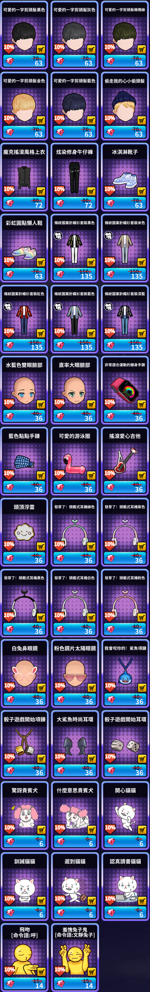 [루비 샵] 추가 상품 (남성)