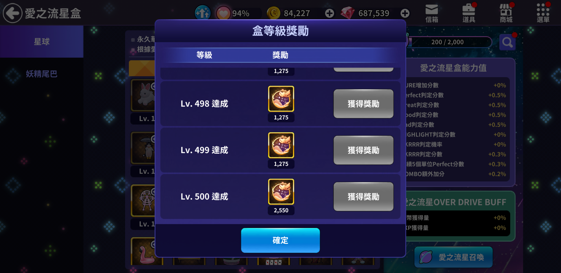 📌愛之流星盒最高等級擴展至500等級。