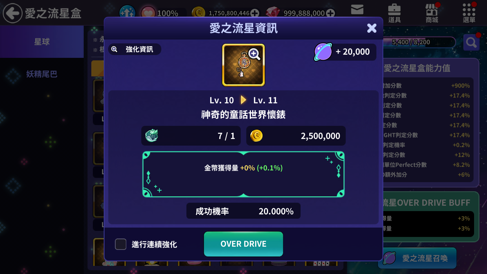 📌比現有愛之流星盒強化更上一層樓的成長內容,新增了[OVER DRIVE]。
