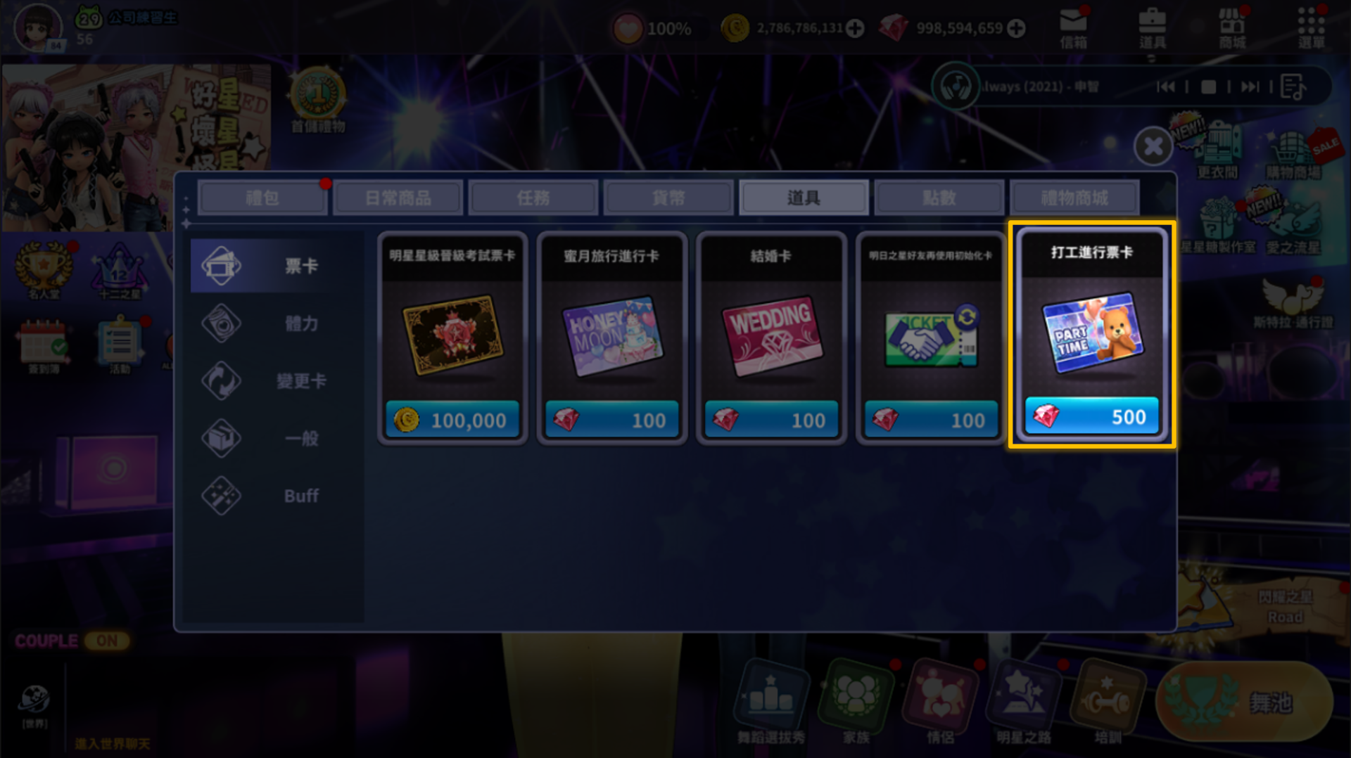 📌在[商城] - [道具] 新增'打工進行票卡' 商品。