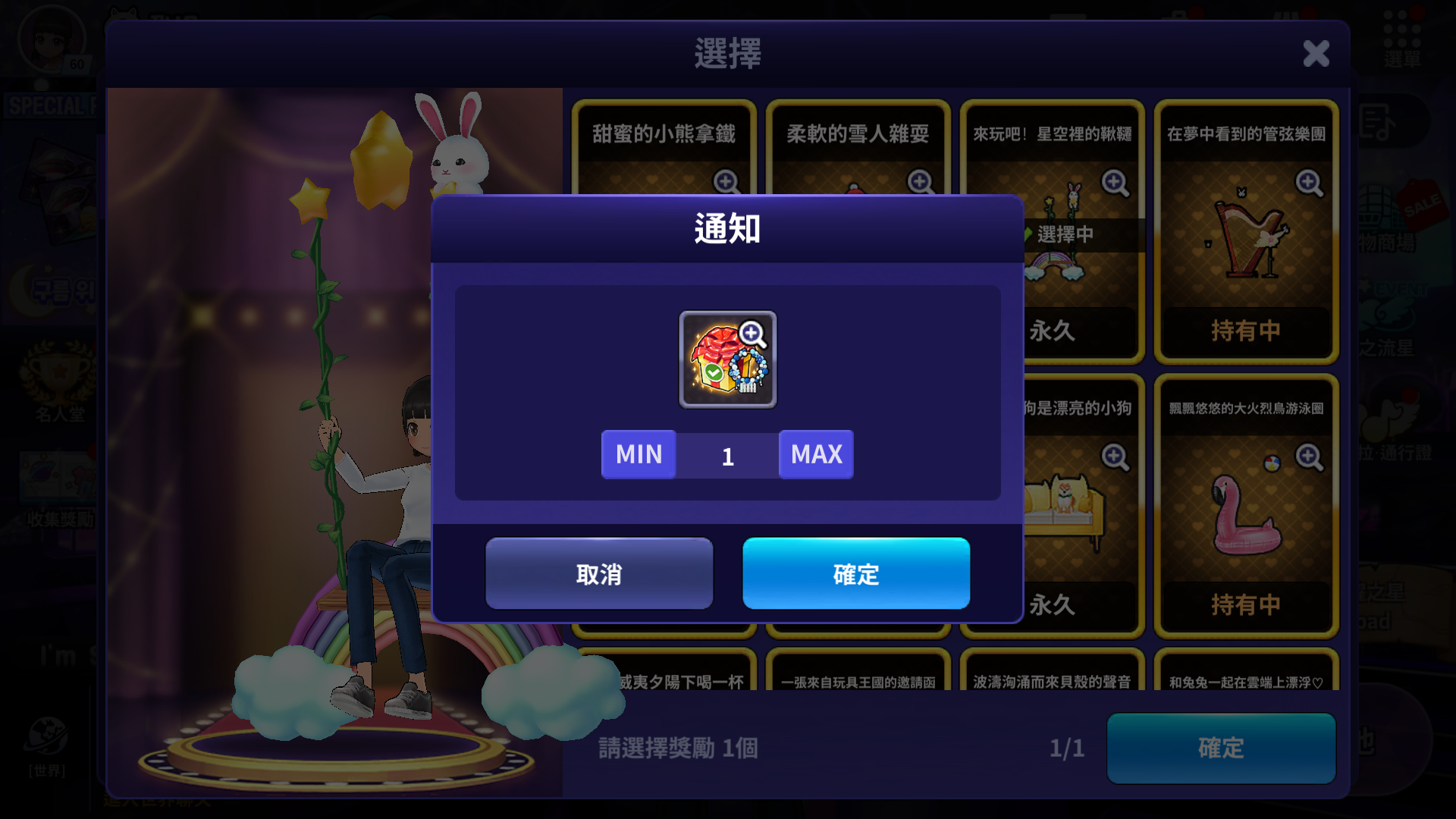 - 使用選擇箱子道具時,增加一次可選擇多個數量的調節功能。