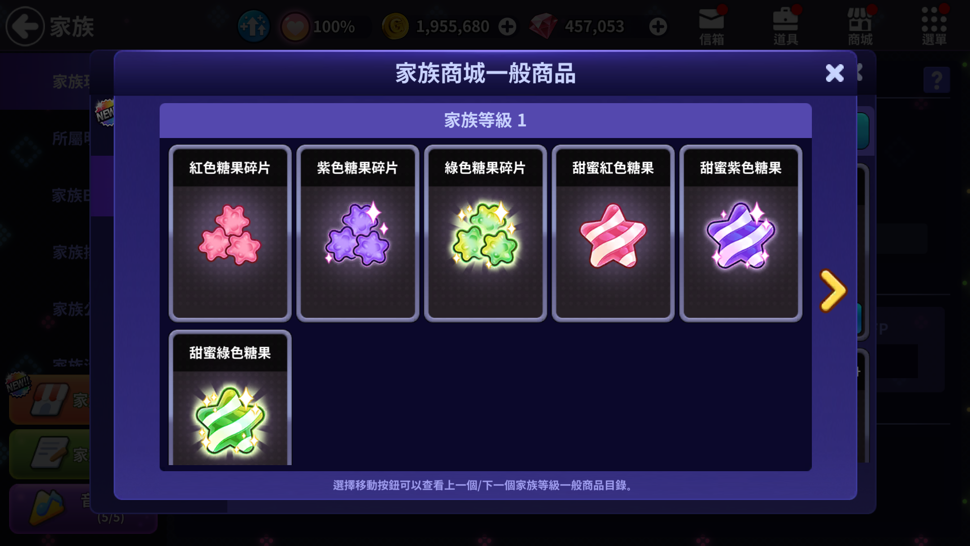 - [家族商城] - [一般商品]일반 상품]新增糖果碎片、糖果商品。